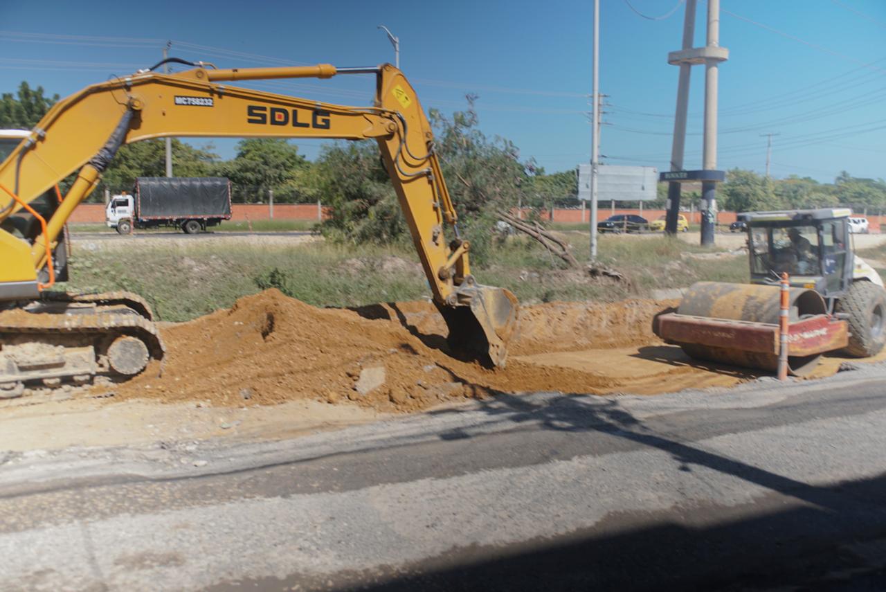 Maquinaria pesada como retroexcavadoras, bolcóster, aplanadoras y volquetas operan de manera coordinada para ejecutar esta importante obra de infraestructura que conecta a Soledad con el resto del pais y por donde circulan diariamente miles de vehículos de procedencia local y nacional.