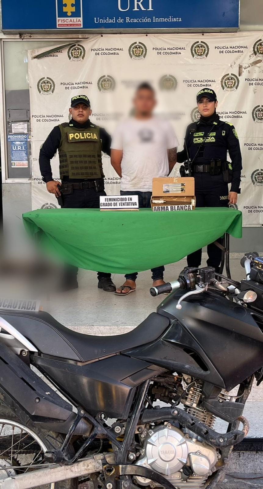 En el inmueble fue encontrada una mujer con heridas, quien manifestó que el hoy capturado presuntamente la habría agredido en repetidas ocasiones con el arma blanca. La víctima fue trasladada de inmediato a un centro asistencial para recibir atención médica, mientras que el capturado fue puesto a disposición de la autoridad competente para que responda por el delito de feminicidio en grado de tentativa.