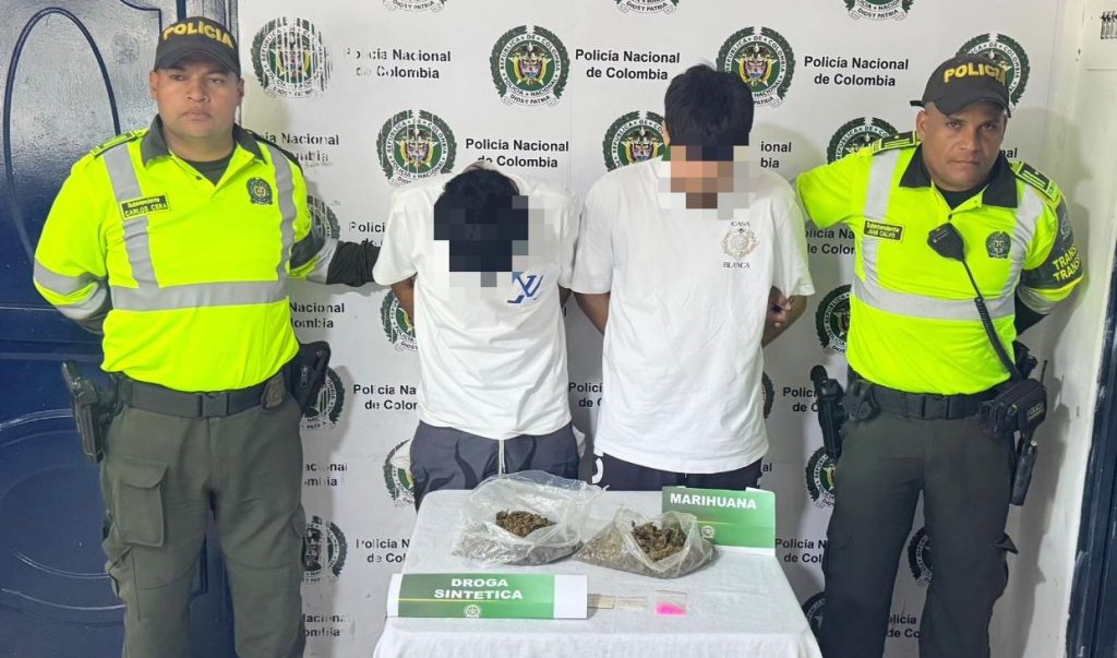 Posteriormente, en un segundo procedimiento realizado en el kilómetro 64 de la Vía Oriental (jurisdicción del municipio de Sabanagrande), se capturó a dos hombres de 24 y 20 años. Los implicados se movilizaban como pasajeros en un bus de servicio público y, tras un registro a sus pertenencias, se les incautó una bolsa con 374 gramos de marihuana y 6 gramos de droga sintética.