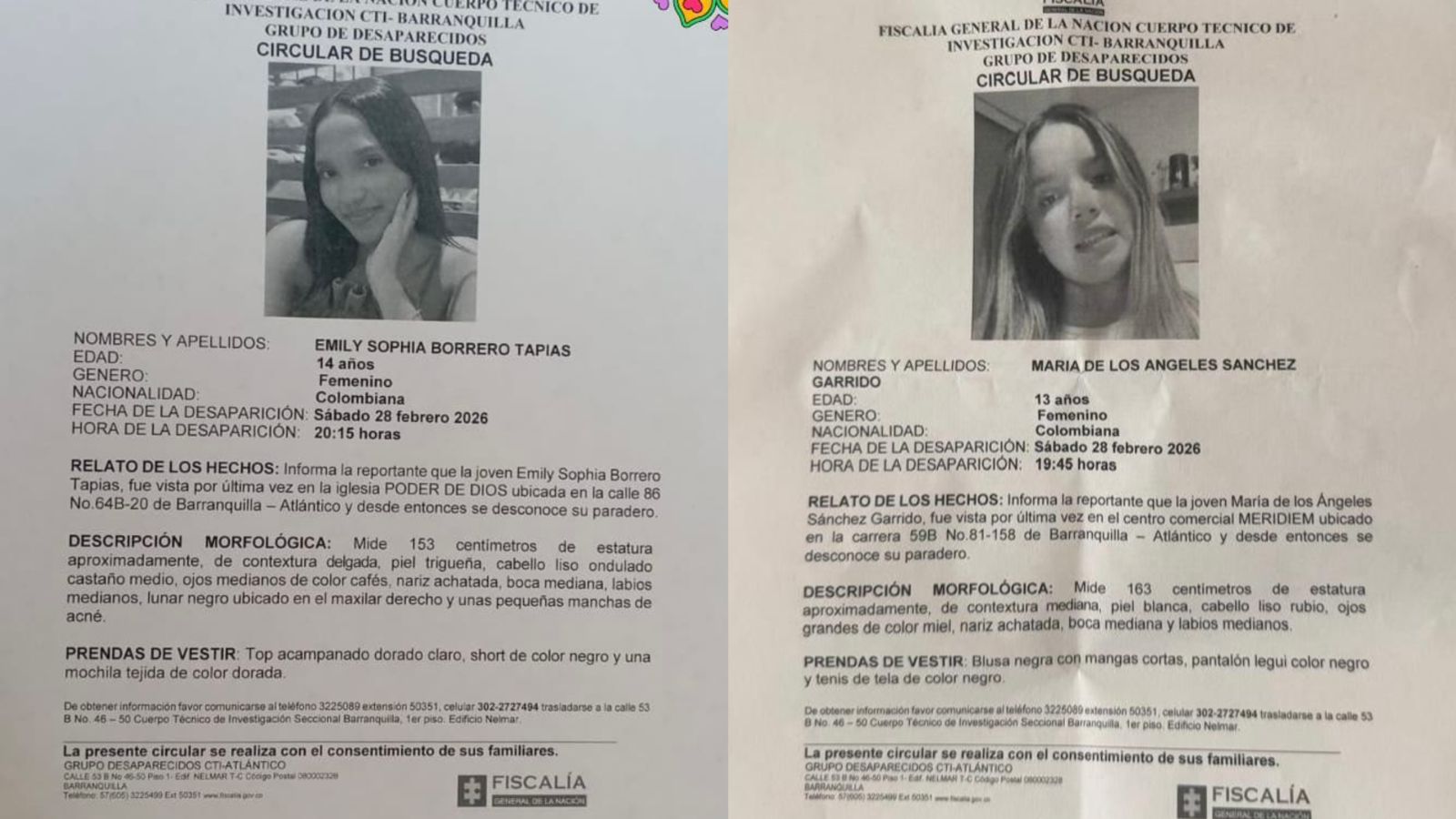 Una de las adolescentes es Emily Sophia Borrero Tapias, de 14 años, cuya desaparición fue reportada mediante circular emitida por la Fiscalía General de la Nación, a través del CTI Seccional Barranquilla.