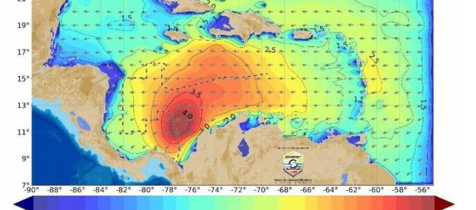 En los litorales costeros se estiman olas con alturas de 3 metros en Puerto Bolívar, de 2.8 metros en Barranquilla y 2.7 metros en Cartagena.
