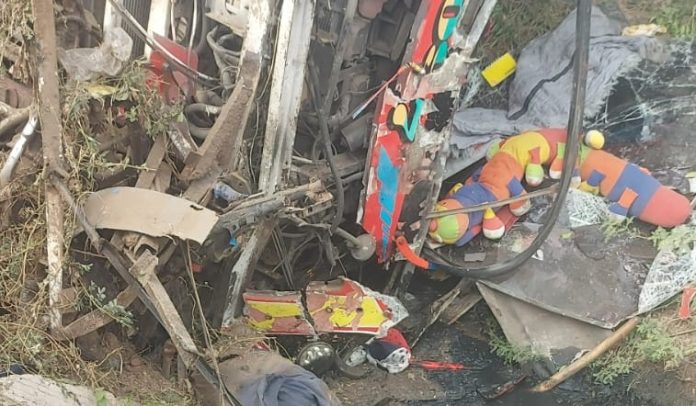 De acuerdo con información preliminar entregada por las autoridades, el bus habría impactado contra un motocarro, lo que provocó que el conductor perdiera el control del vehículo y posteriormente se volcara sobre la vía.