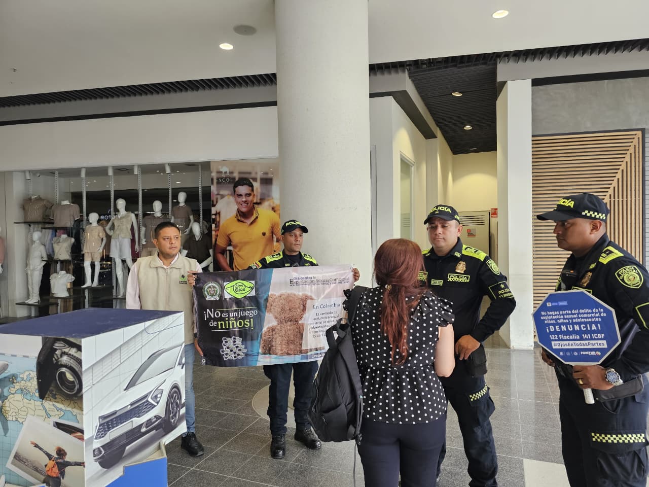 La Policía Nacional, a través del Grupo de Protección al Turismo y Patrimonio Nacional, en el marco de la Estrategia Turismo Seguro, y en articulación con el Grupo de Protección a la Infancia y Adolescencia y funcionarios del Instituto Colombiano de Bienestar Familiar (ICBF), llevó a cabo una jornada de prevención y sensibilización en un centro comercial de la ciudad, con el propósito de contrarrestar la explotación sexual comercial de niños, niñas y adolescentes.