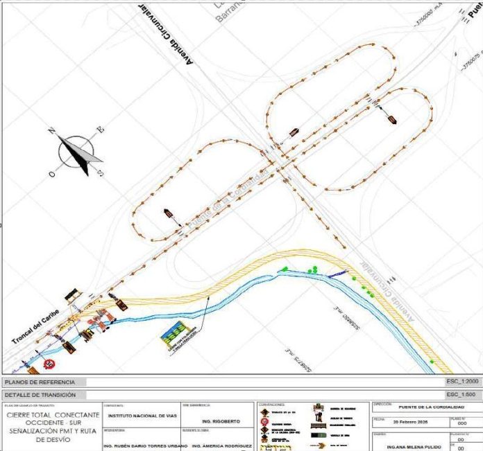 La Secretaría de Tránsito y Seguridad Vial informa a la ciudadanía que, debido a obras de mantenimiento en el puente de la Cordialidad, se ha programado el cierre total temporal del tramo correspondiente a la conectante Galapa–Circunvalar, desde el lunes 6 de abril hasta el miércoles 6 de mayo.