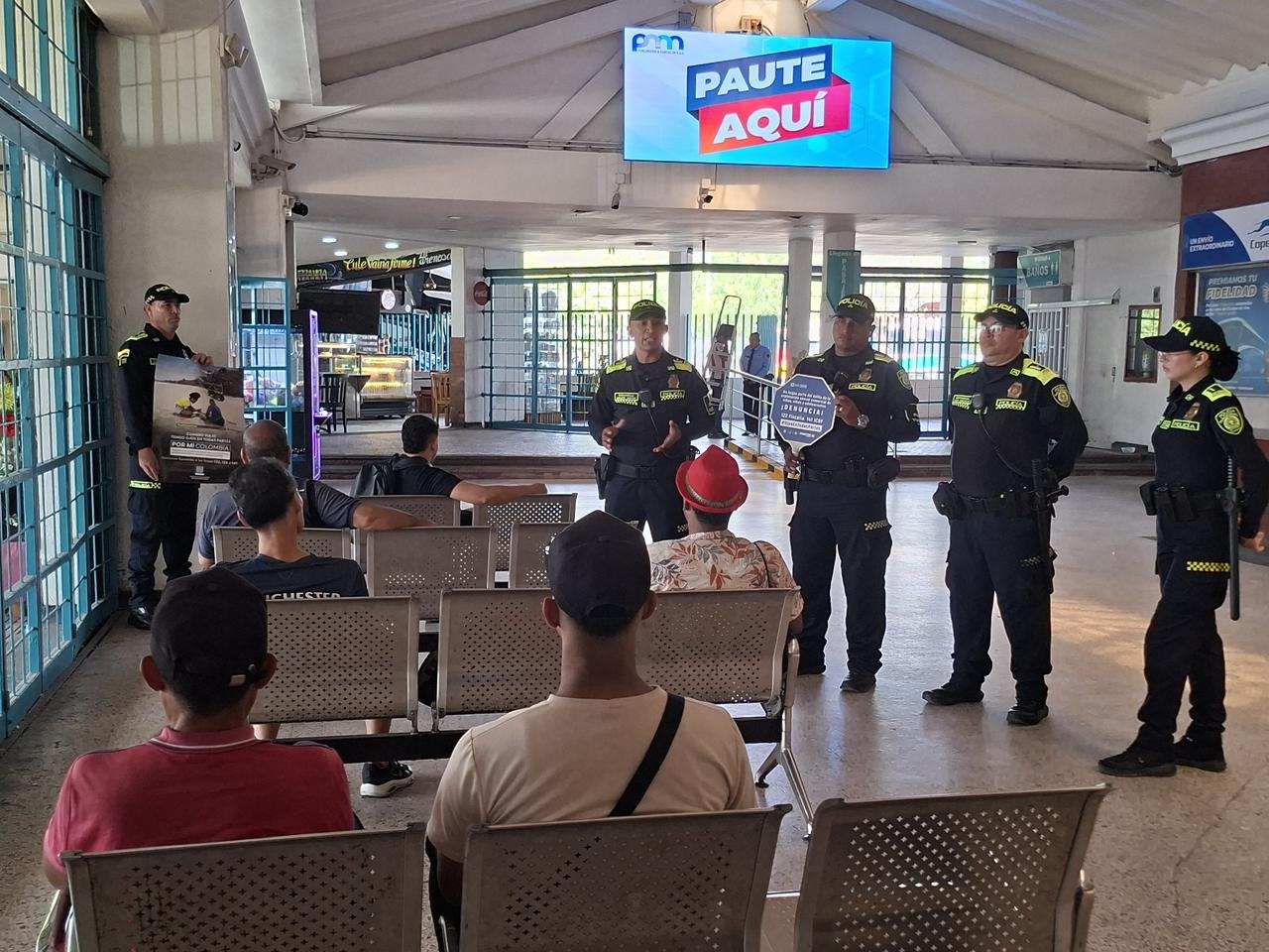 Jornada de sensibilización en la Terminal de Transporte busca alertar a la ciudadanía y fortalecer la denuncia oportuna frente a este delito.