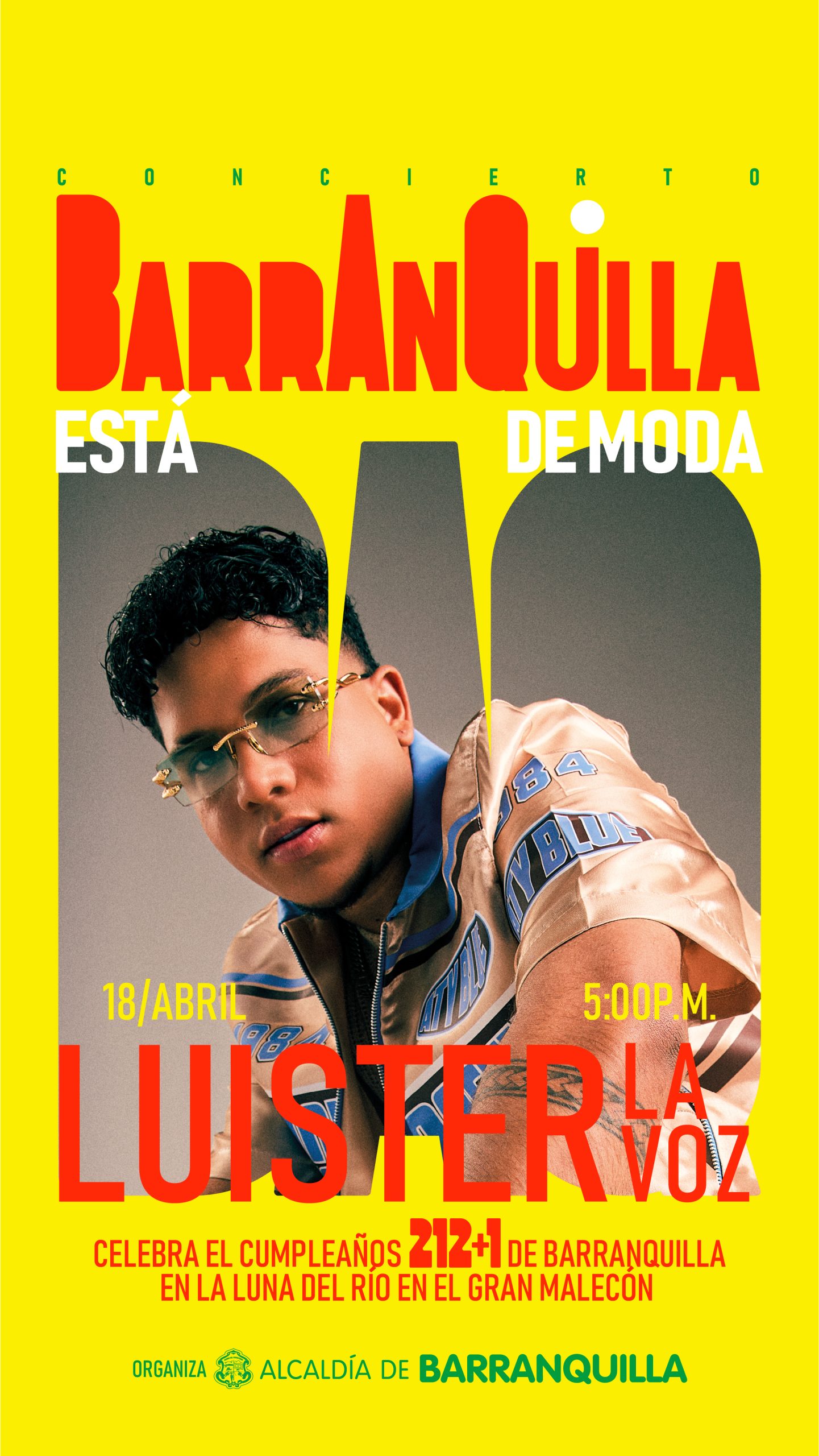 Este evento musical hace parte de la programación de actividades previstas por la Administración del alcalde Alejandro Char para festejar el cumpleaños de la ciudad y su campaña Barranquilla está de Moda, que inició el pasado 7 de abril en el Malecón de Rebolo, donde el alcalde anunció este nuevo concierto para los barranquilleros, en el sitio turístico preferido por propios y visitantes.