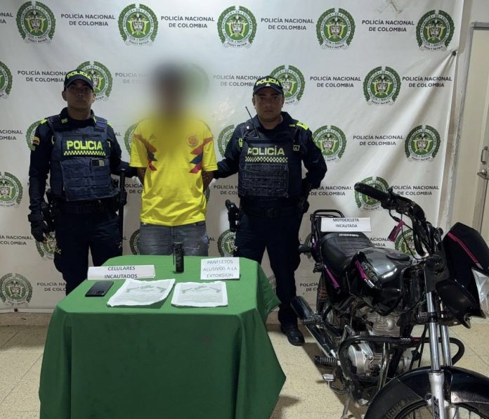 En el marco de las acciones estratégicas que viene adelantando la Policía Nacional para contrarrestar la extorsión y delitos conexos, fue capturada en flagrancia una persona a quien se le halló en su poder una granada y panfletos extorsivos.