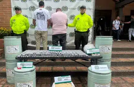 Durante el operativo fueron capturadas dos personas, quienes deberán responder por los delitos de tenencia, fabricación y tráfico de sustancias u objetos peligrosos, además de porte y tráfico de explosivos de uso restringido.